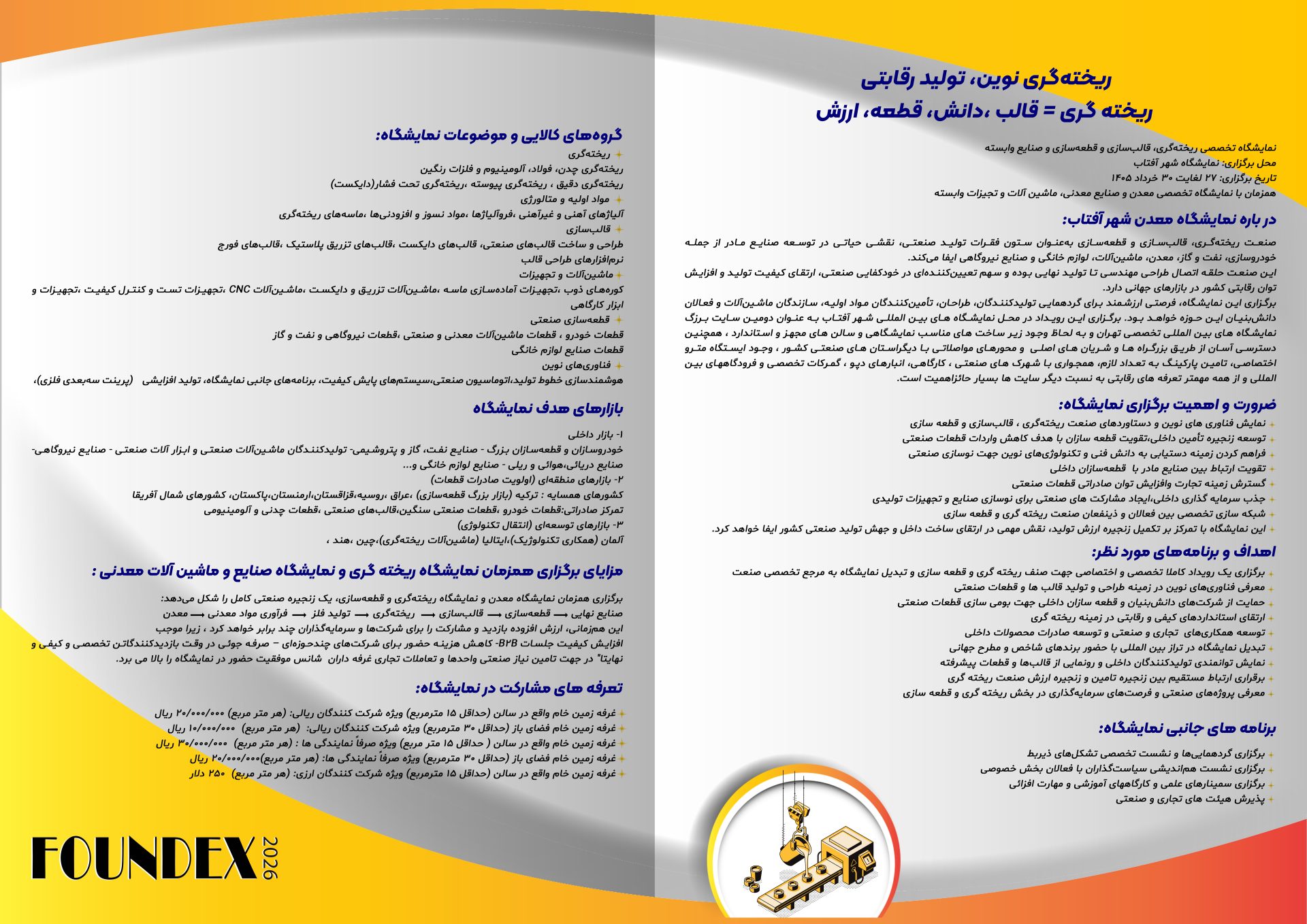 | نمایشگاه تخصصی ریخته گری، قالب سازی، قطعه سازی، ماشین آلات و صنایع وابسته | ||